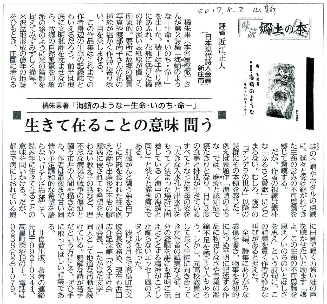冨樫徹君発行の詩集への山形新聞書評の紹介