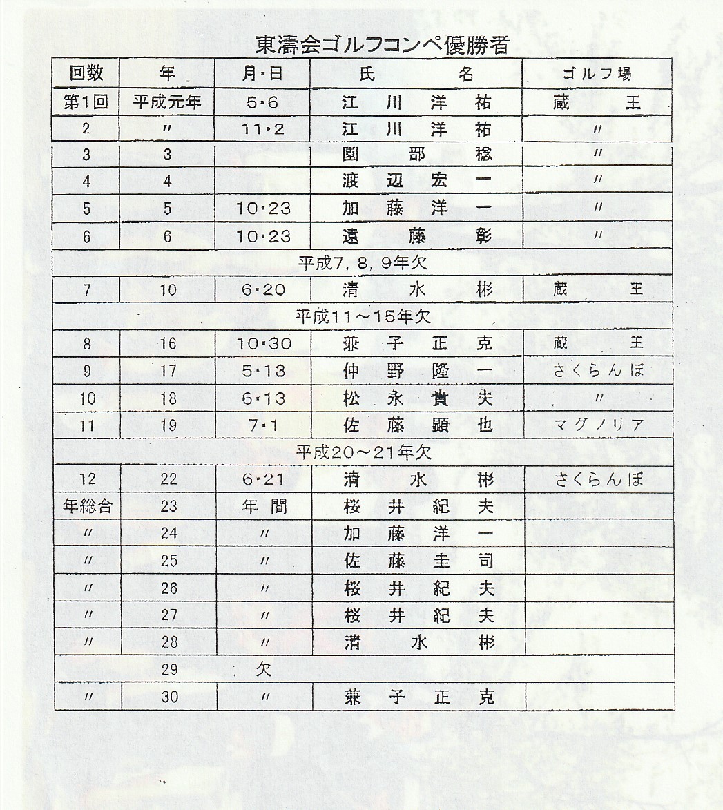 山形東濤会ゴルフ愛好会歴代優勝者名一覧見つかる