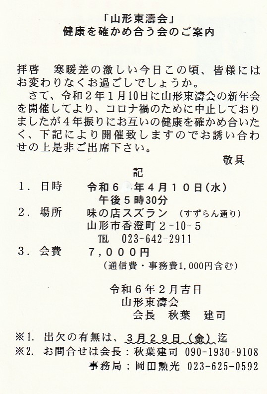 山形東濤会の「健康を確かめ合う会」と称する集まりが開かれた。