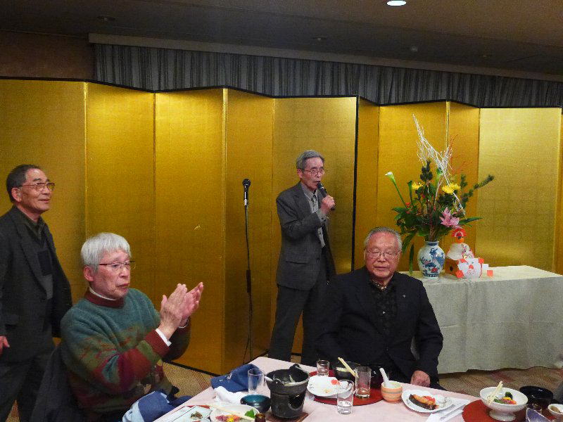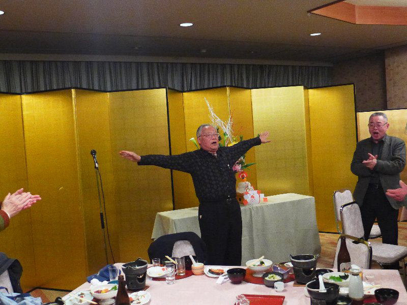 名残り惜しい新年会も秋葉会長による恒例のエールとおお勝利を合唱しての閉会となった。