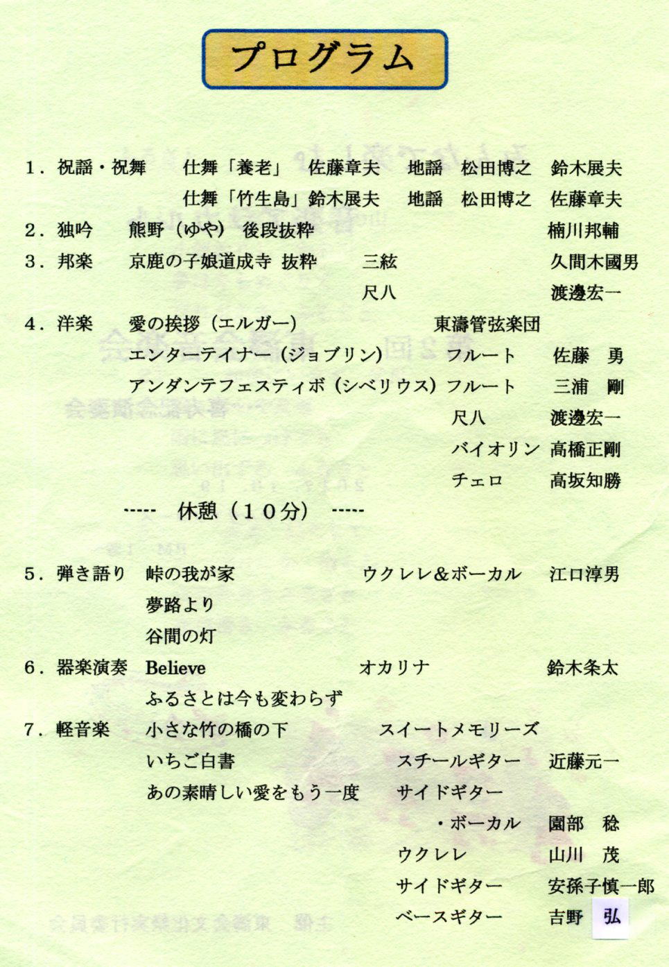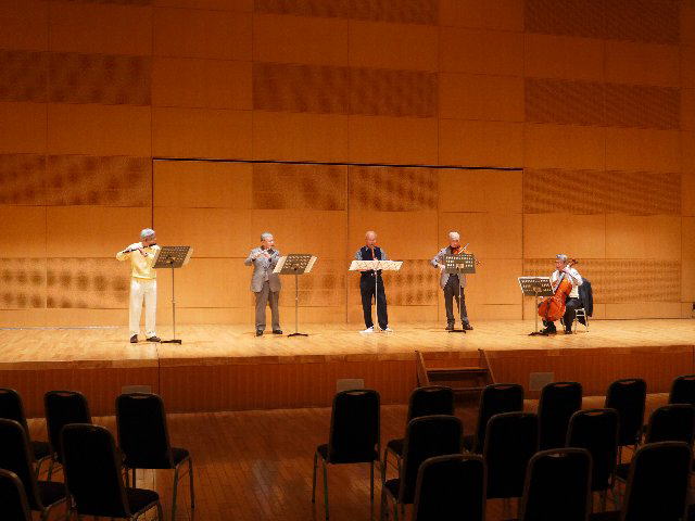 洋楽の部の演奏である。フルート、尺八、バイオリン、チェロという多彩な楽器での