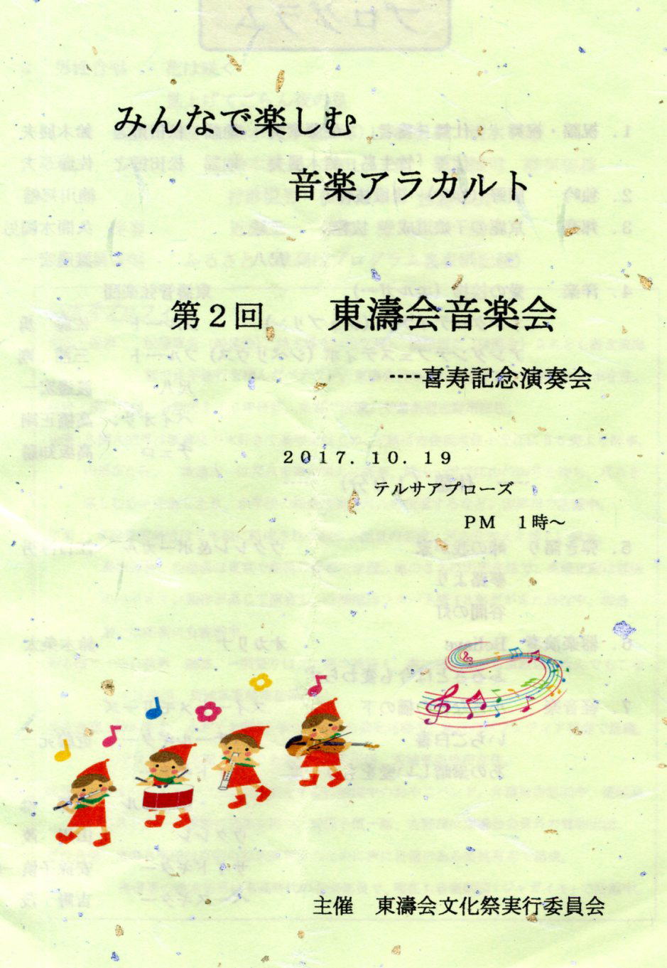 平成29年10月19日は午後13時から山形市テルサにて音楽祭を開催し、終了