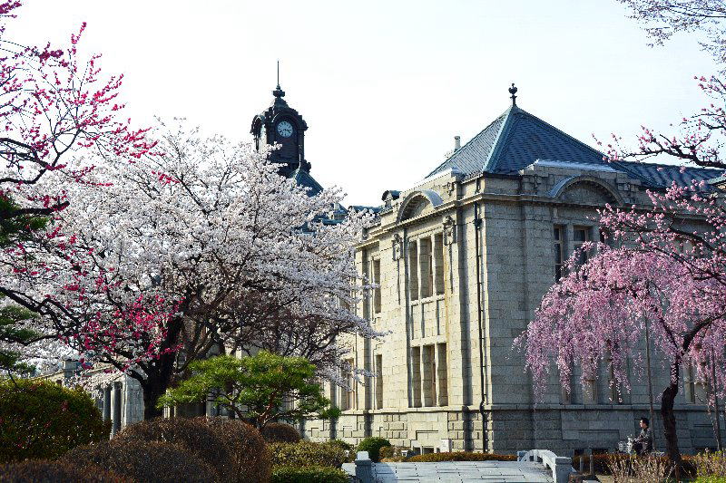 題名文翔館時計塔 前掲の中庭に見るレンガ造りの建物の特徴を