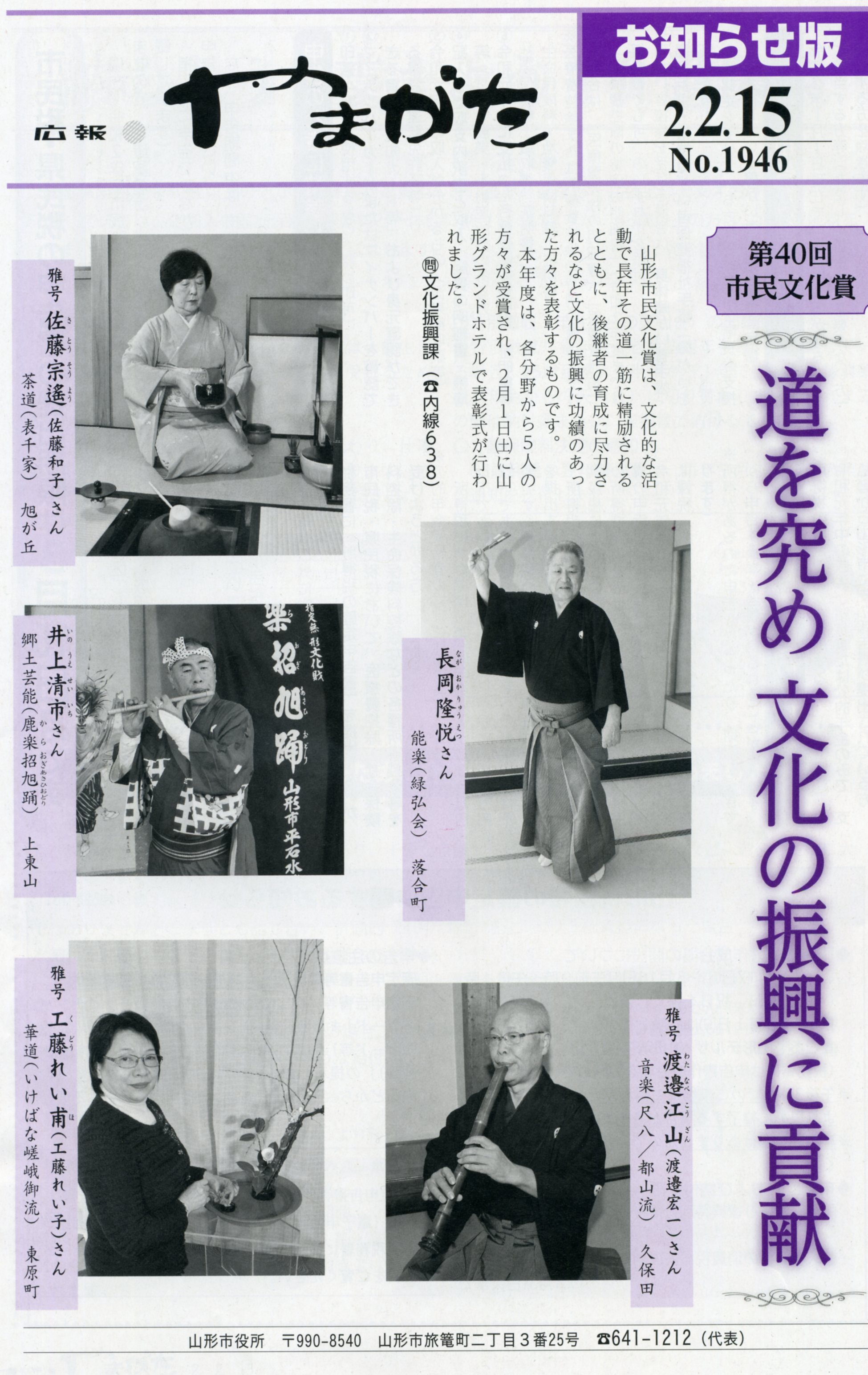 山形市市報に市民文化賞の詳細が広報されました。