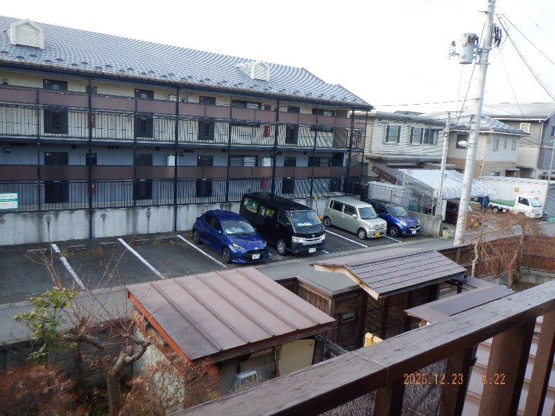 12月22日の朝の天気 積雪無し 隣住宅建造用部材搬入