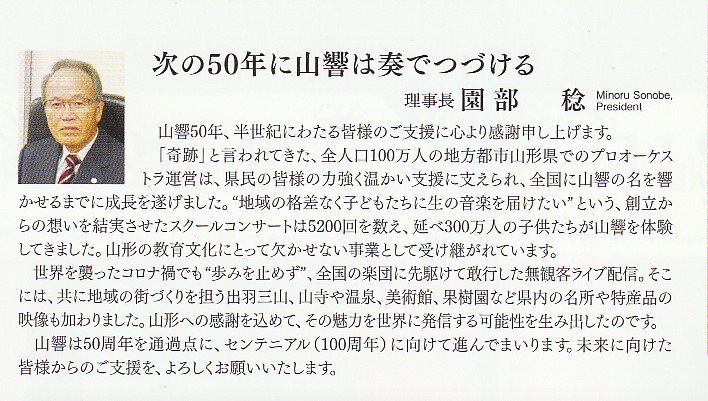 演奏が始まる前に司会者が今回の300回記念演奏会が山形交響楽団創設50周年と
