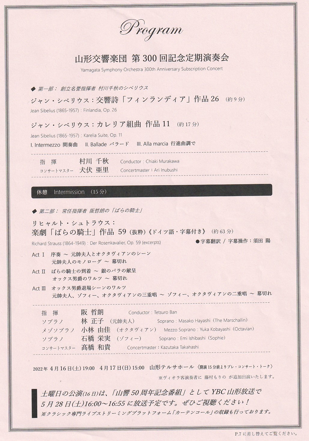 標記の演奏会が令和4年4月16日、17日に山形市のテルサで開かれた。