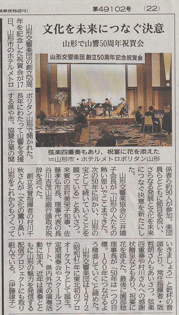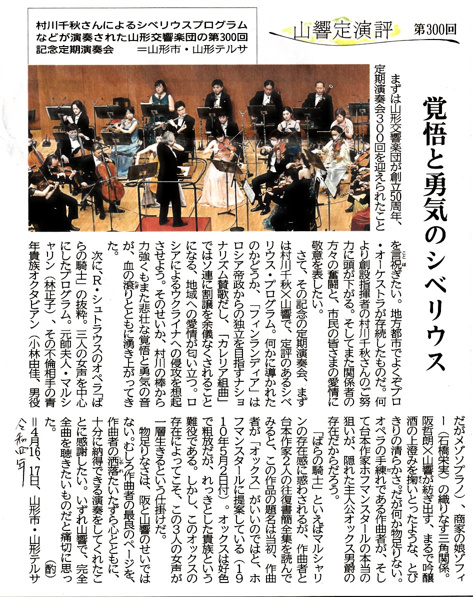 演奏会の後に私が受けた感銘を山形新聞の「やましんサロン」という投稿欄に応募したら無事