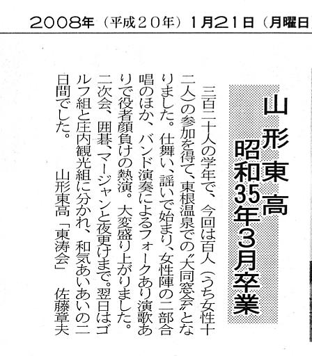 我々の同窓会が山形新聞の記事になりました。山新グループ関係者のおかげです。