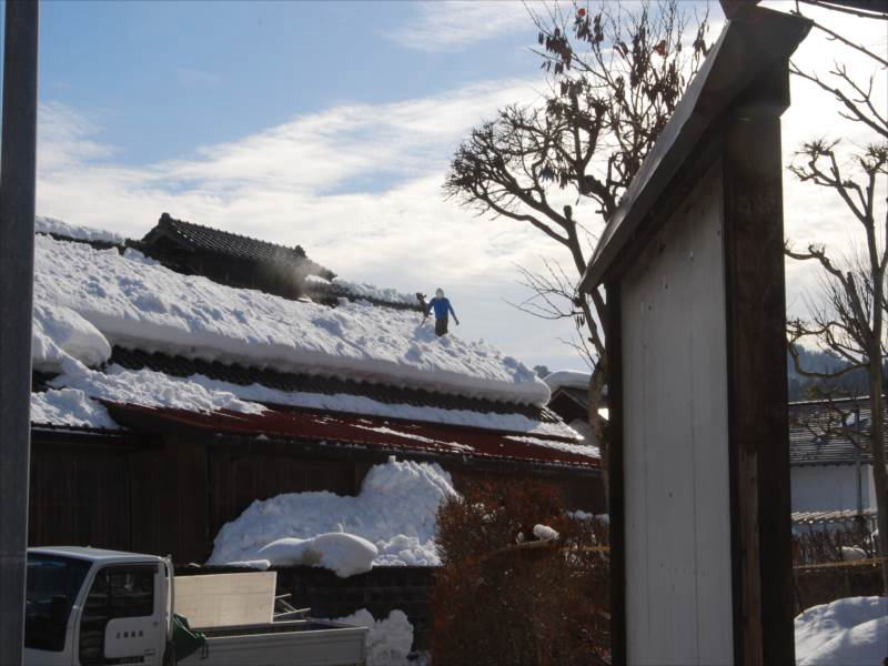 これだけの面積の屋根の雪をたった二人で下すとは気が遠くなる。