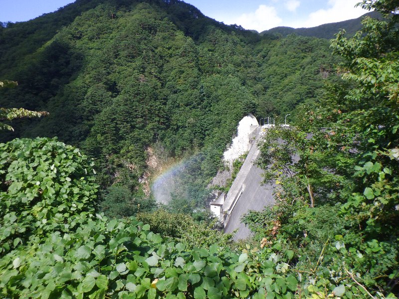 近づくとダムの堰堤の最下部から水が霧状に放散している。そこには綺麗な